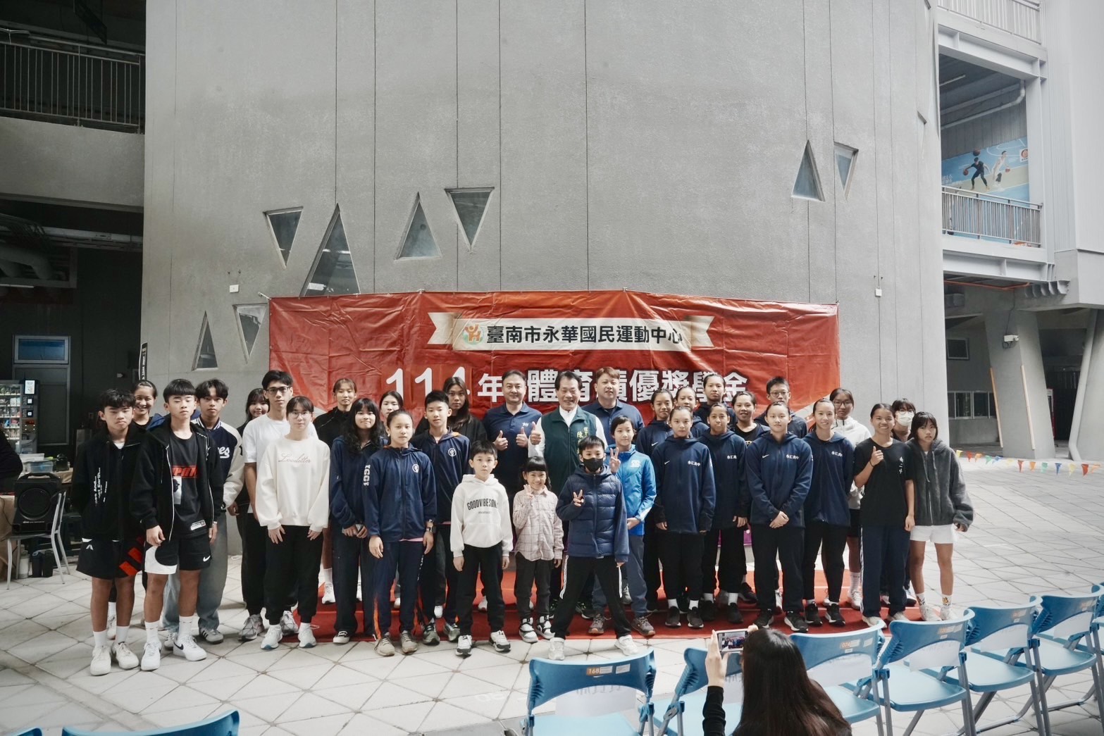 臺南市永華國民運動中心委外營運廠商喬鑫股份有限公司於今(20)日辦理「114年度體育績優獎學金」頒獎典禮,共計有63位來自各級學校之優秀選手獲獎。體育局長陳良乾特別代表市長黃偉哲到場致意,並頒獎肯定獲獎選手在運動競技與平日訓練上的傑出表現,並讚許私人企業持續回饋基層體育發展的義舉。