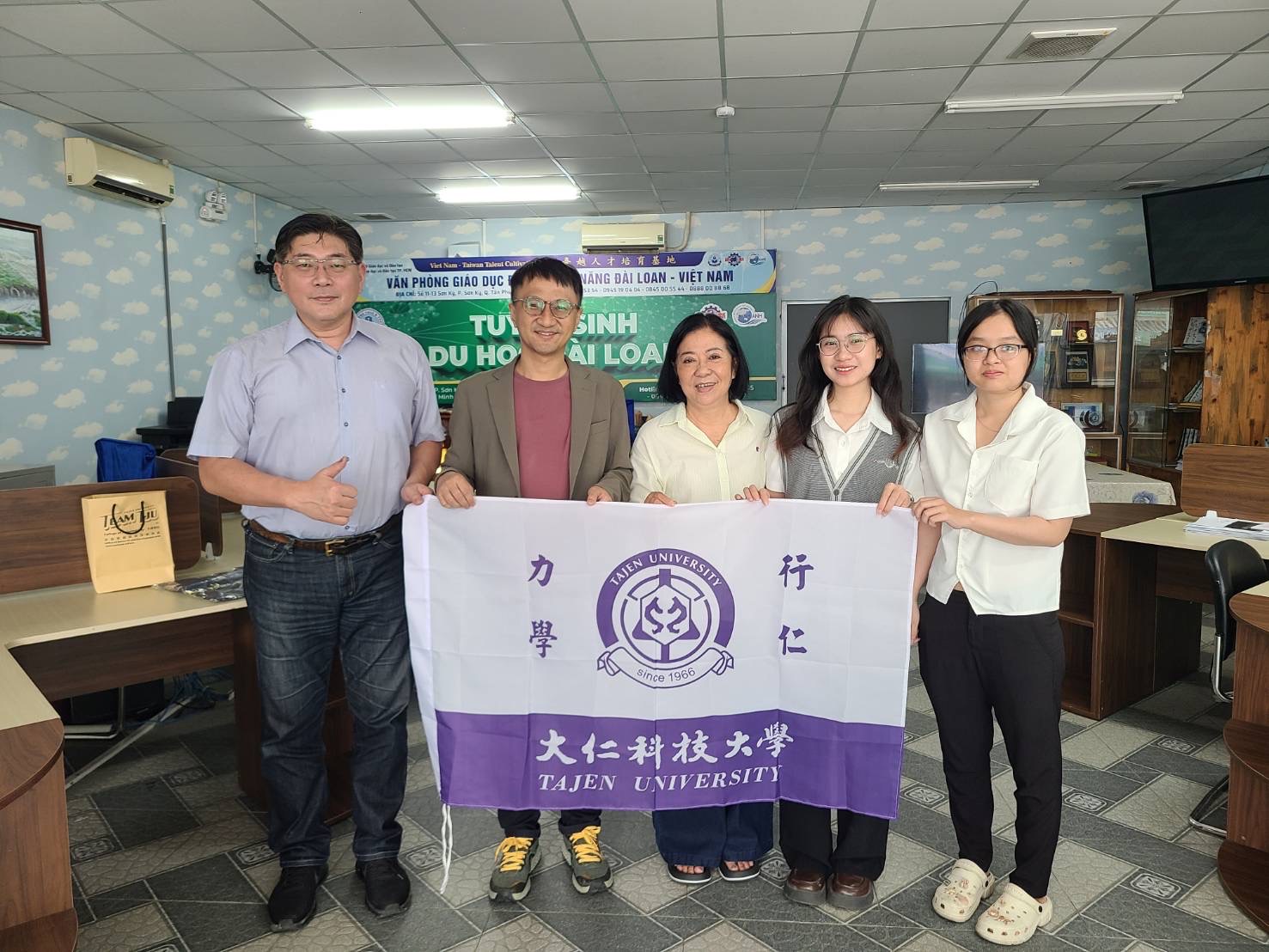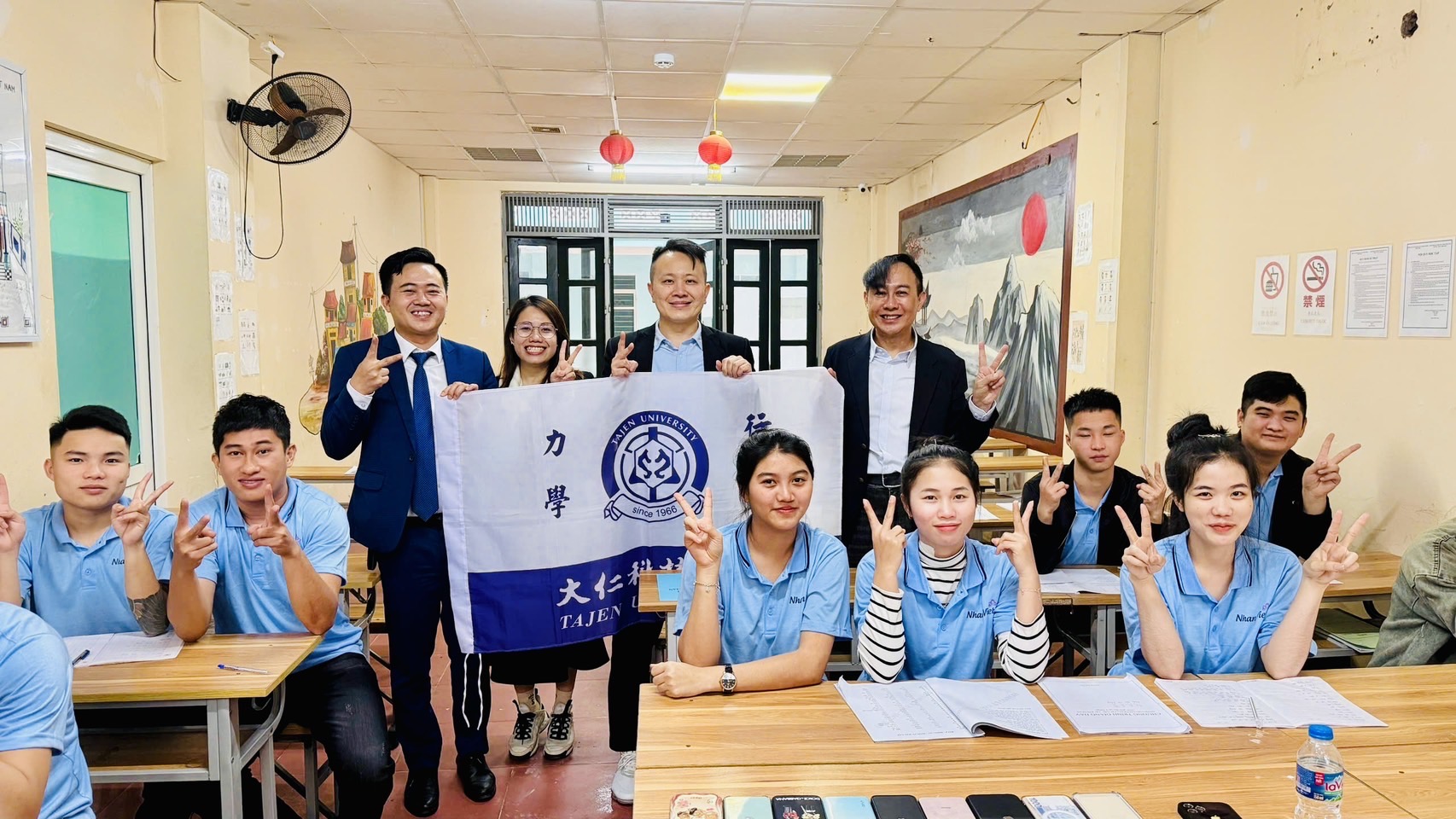 【視傳媒/記者范家豪/鹽埔報導】 為擴展國際合作並推動華語教育,台灣大仁科技大學近日派遣研發處長黃柏森副教授、國際專修部長李建立副教授、餐旅管理系王智永副教授及華語中心李祥君主任,前往越南進行校園宣傳與合作洽談。此次訪問重點包括簽署姊妹校合作備忘錄(MOU)、規劃當地華語中心的課程與測驗機制,幫助越南學生提升華語能力,並為未來赴台深造鋪路。