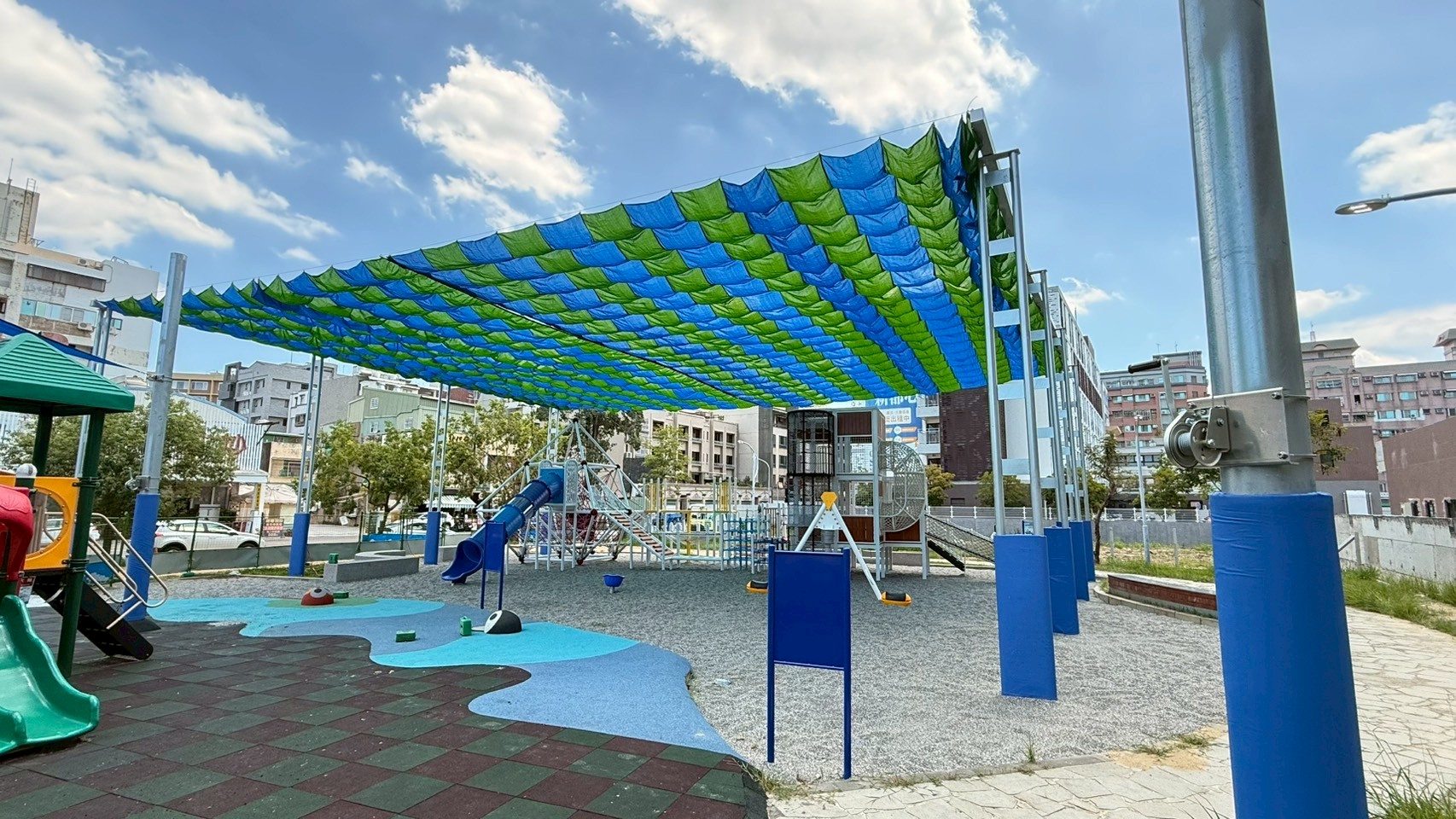 東區東智里陽光公園及崇成里崇成公園兒童特色遊具攀爬網完工
