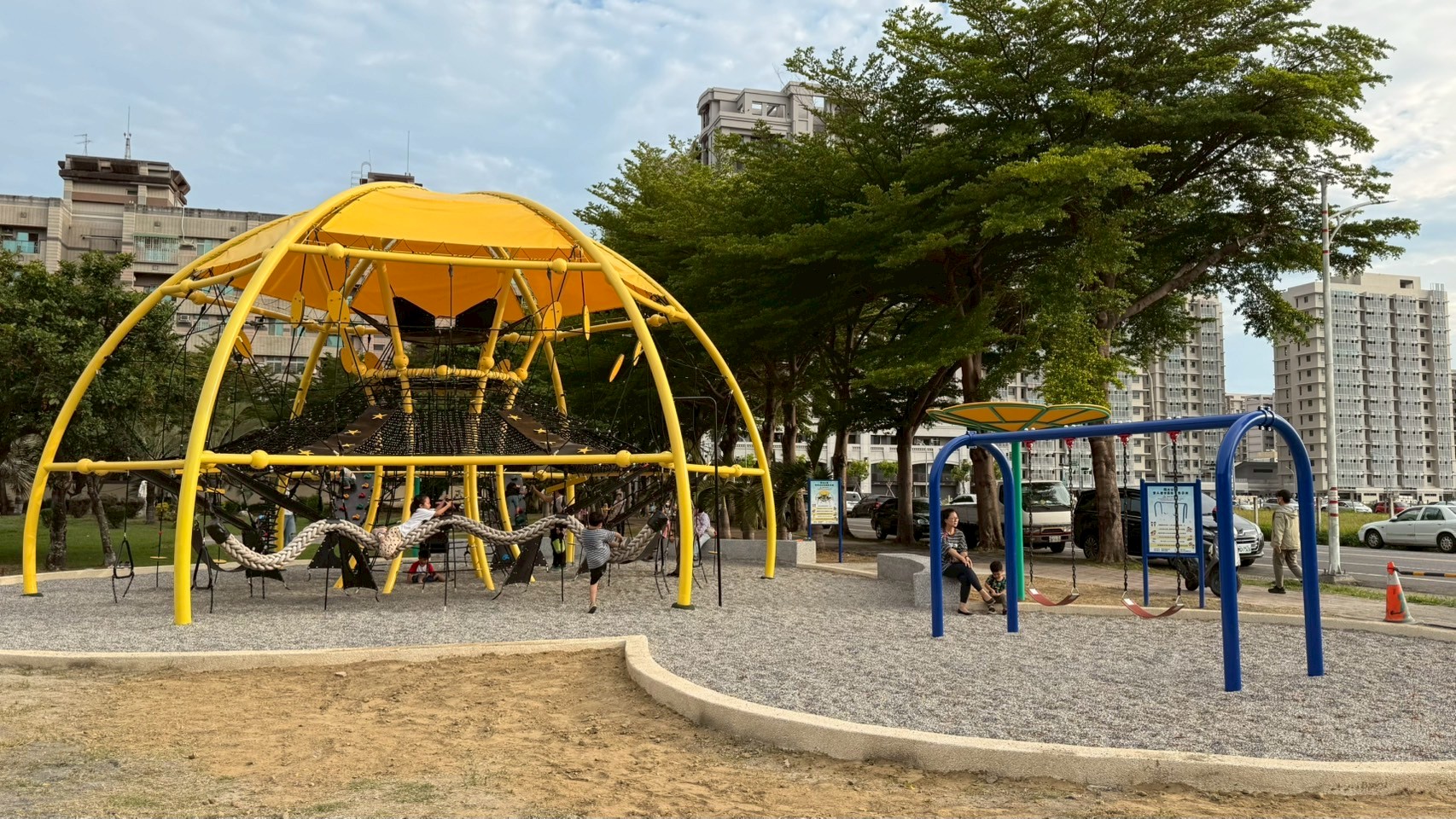 ▲東區東智里陽光公園及崇成里崇成公園兒童特色遊具攀爬網完工。(記者黃雋淮 翻攝)