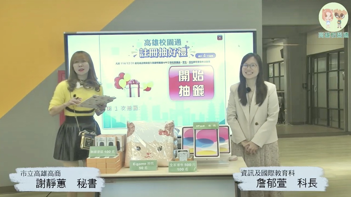 本次抽獎活動自114年12月底開跑,凡完成註冊或登入者皆具備抽獎資格,累計超過1萬4,000名家長及9,000名師生參與。今日公開抽出多項好禮,包括平板電腦、超商禮券及各式實用小禮物,得獎名單將同步公告於「高雄校園通APP」及相關官方管道。