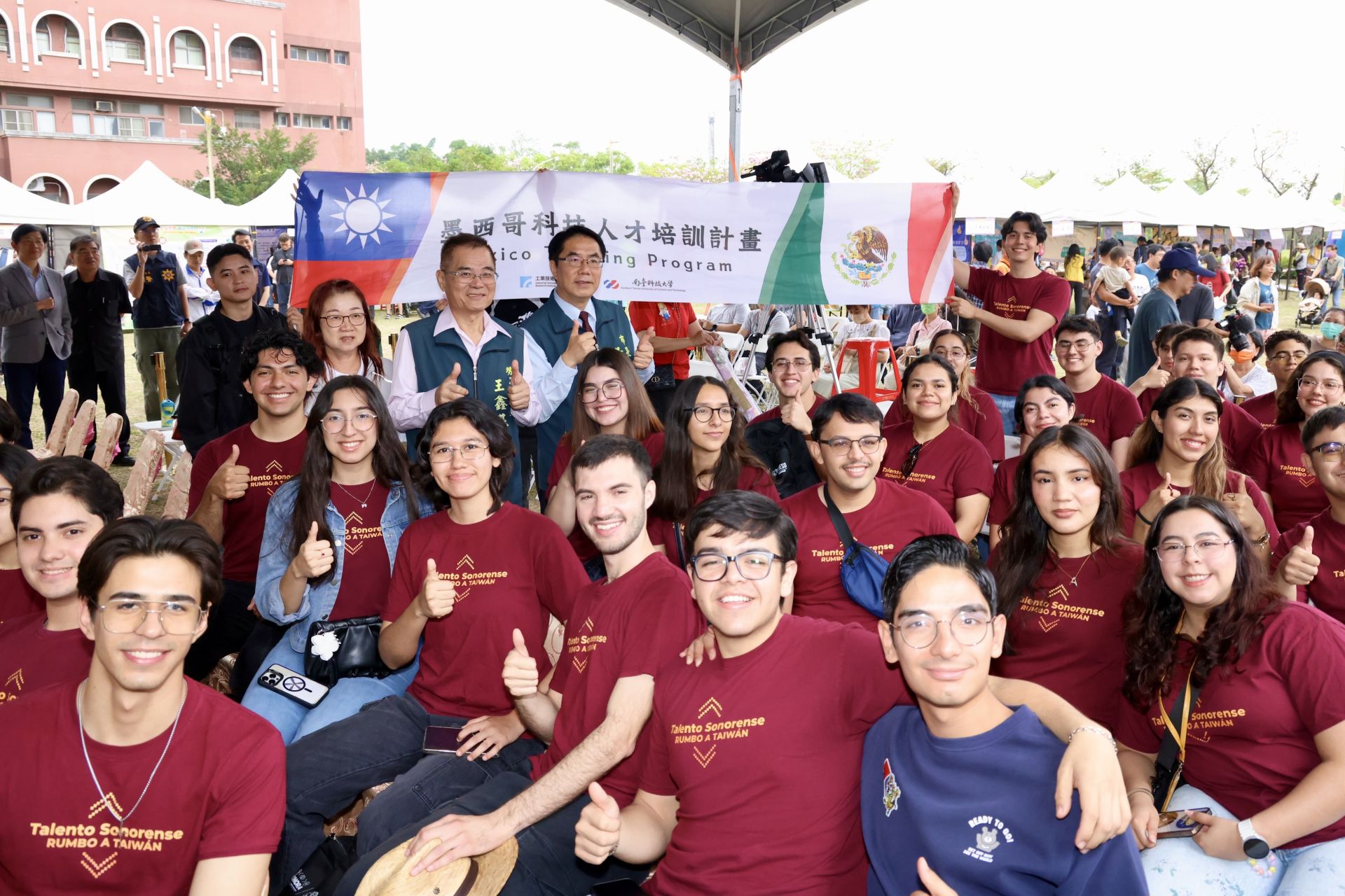 來自墨西哥的留學生參與今日活動,這群學生是墨西哥SONORA州政府從6,000名申請者中精選出的各界精英,目前在南台科技大學接受專業培訓。